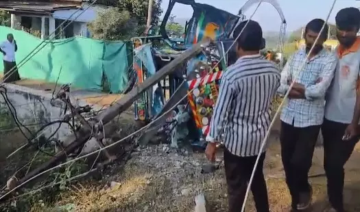 2 Injured as Goods Carrier Crashes Into RTC Bus in Bhadradri Kothagudem