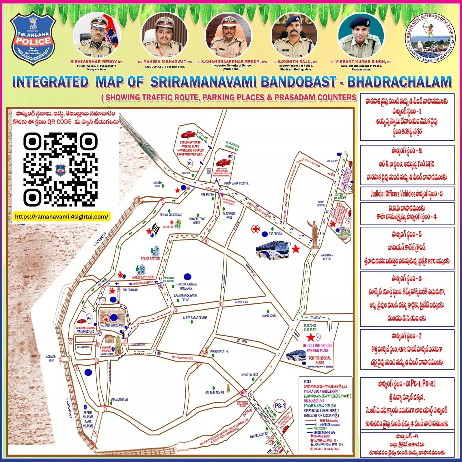 Nalgonda:Bhadradri-Kothagudem district police on Tuesday issued a route map for devotees attending the Sri Rama Navami celebrations at the Sri Seetharamachandra Swamy temple in Bhadrachalam on March 27.