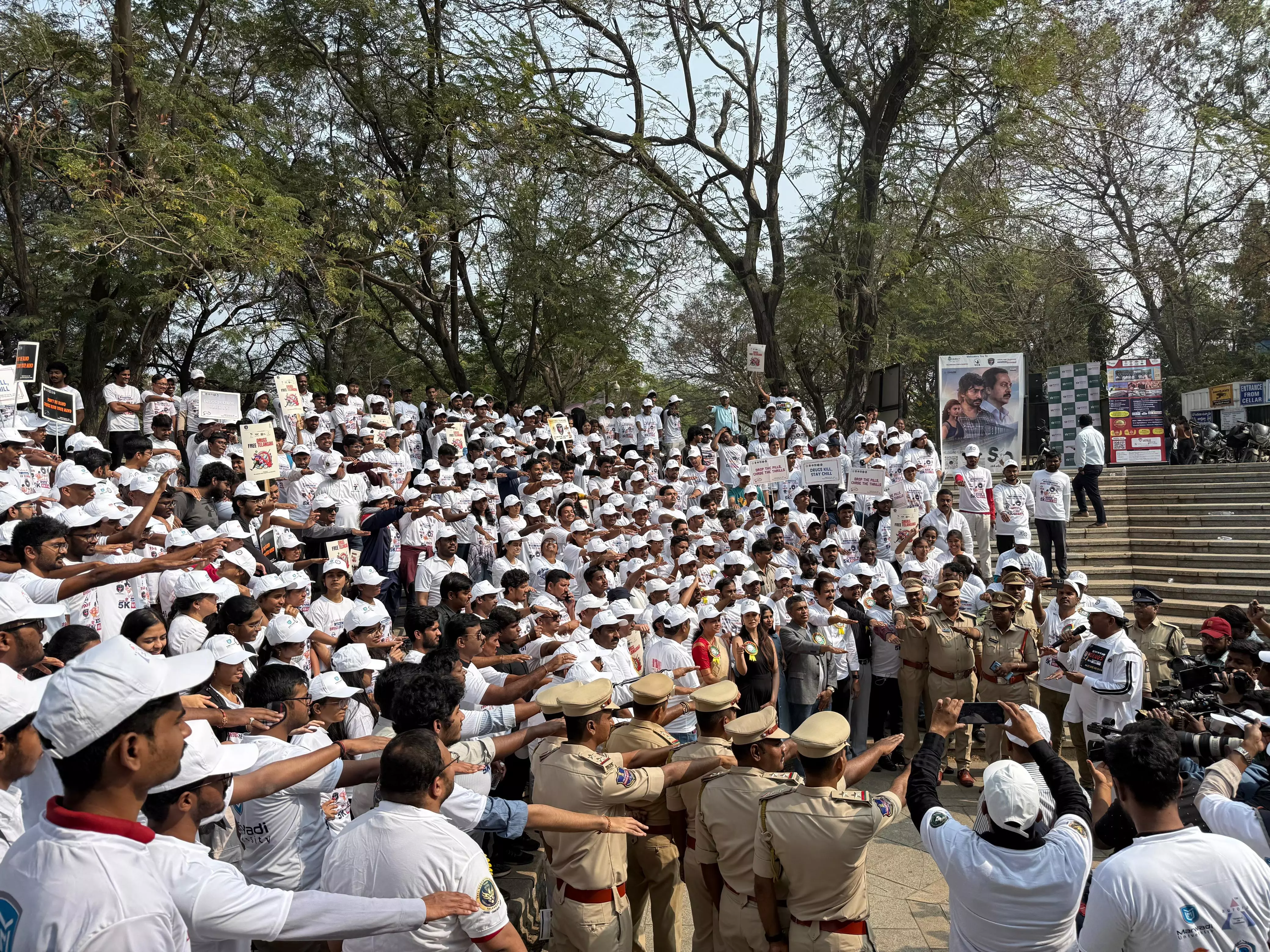 HYDERABAD: In a show of solidarity against the menace of narcotics, nearly 2,000 students and citizens gathered at Sanjeevaiah Park on Necklace Road for the ‘Youth Unite Against Drugs Awareness Run’ on Saturday.