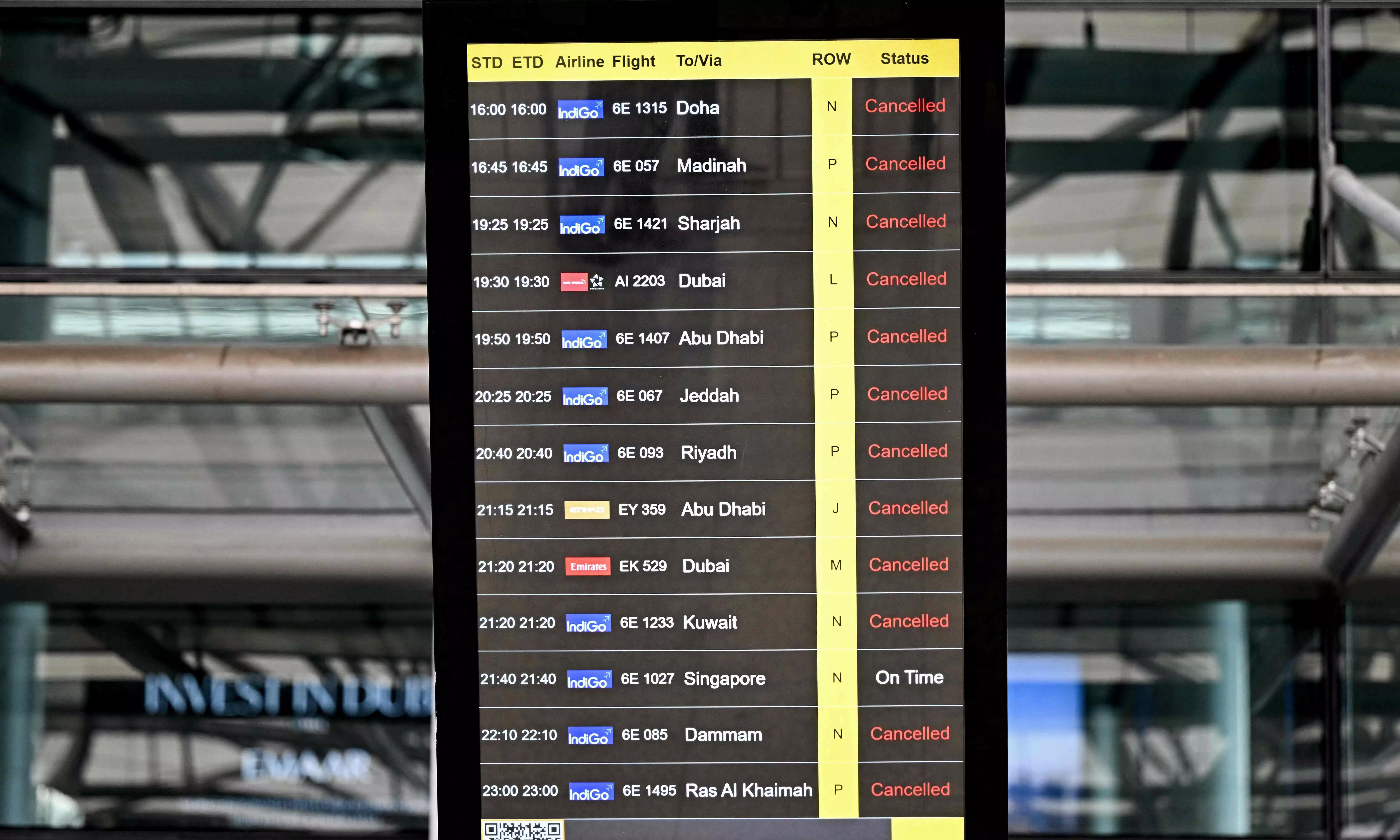 Out of 35 cancelled flights, 19 were international arrivals and 16 departures. However, some special flights have arrived at the airport from West Asia.