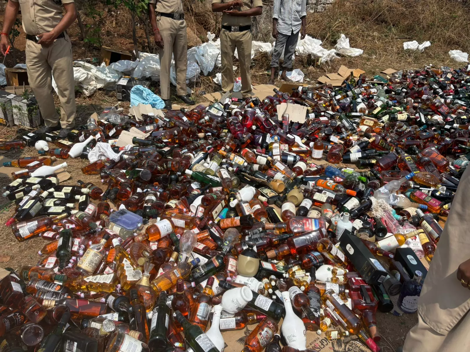 Dasharath said the disposed NDPL bottles were seized in 103 cases by the excise teams while being smuggled into Telangana through RGIA, Shamshabad, from Delhi, Goa and Haryana. Dasharath warned that bringing liquor bottles from other states without paying duty was a punishable offence. He urged travellers and tourists not to carry alcohol from other states where it is available at cheaper prices, cautioning that strict action would be taken against violators.