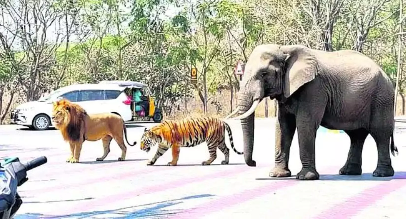 The images, which surfaced two days ago, depicted a tiger inside the premises of a Bharat Petroleum fuel station. On Sunday night, another image showing a lion and an elephant at the same location was shared on various platforms, triggering panic among residents.