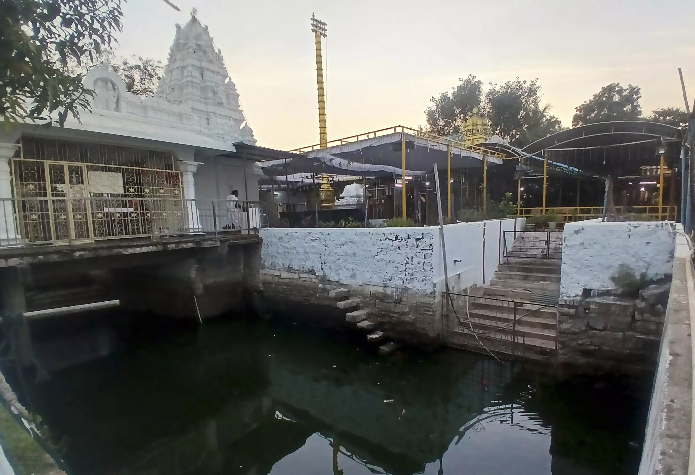 For Kalyan, the Pushkarini holds memories. “We used to release fish and tortoises here. It’s rarely opened now, but I sit nearby and meditate,” he says softly.