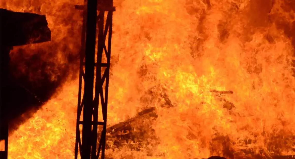 Hyderabad:A major fire broke out at an apartment in Prakash Nagar on Saturday. No loss of life was reported. According to reports, the blaze is suspected to have been triggered by an LPG leak.