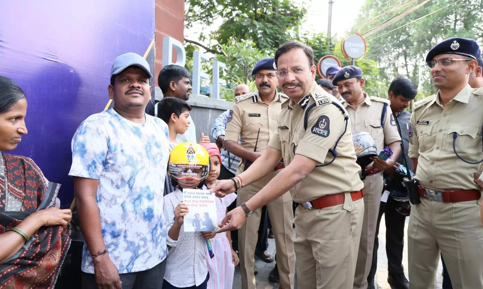 To promote awareness, free helmets were distributed to children by Hyderabad Commissioner of Police V.C. Sajjanar