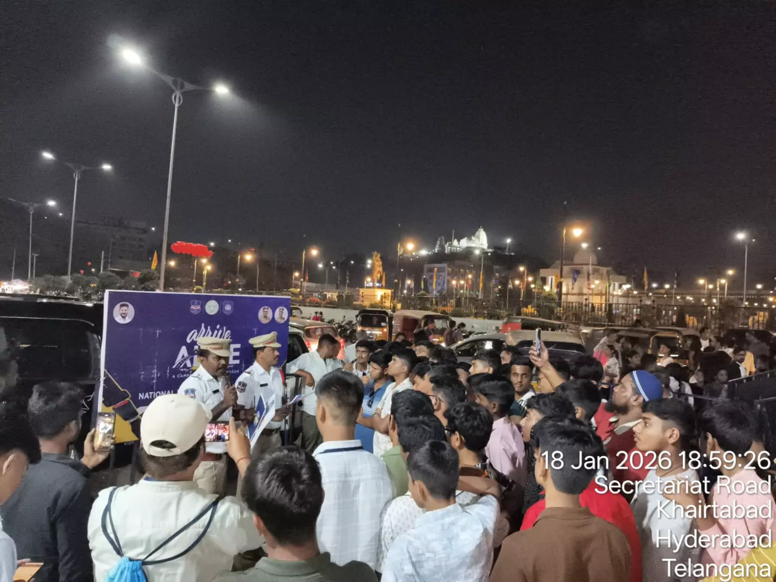 HYDERABAD: Saifabad traffic police organised an ‘Arrive Alive’ campaign, part of an ongoing statewide drive, at the at Lumbini Park on Saturday. Saifabad traffic inspector Madhusudan appealed to citizens to pledge strict adherence to road safety rules. He urged participants to demonstrate their commitment by giving a missed call to 9240015225, through which they would receive a 'certificate of commitment'.