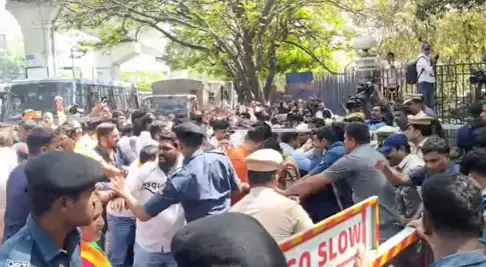 Large numbers of BJP leaders and activists gathered and attempted to lay siege to the DGP office, demanding strict action against those allegedly responsible for Mahadevappa’s death. Police tried to stop the protesters, leading to a heated argument and a brief scuffle between the two sides.
