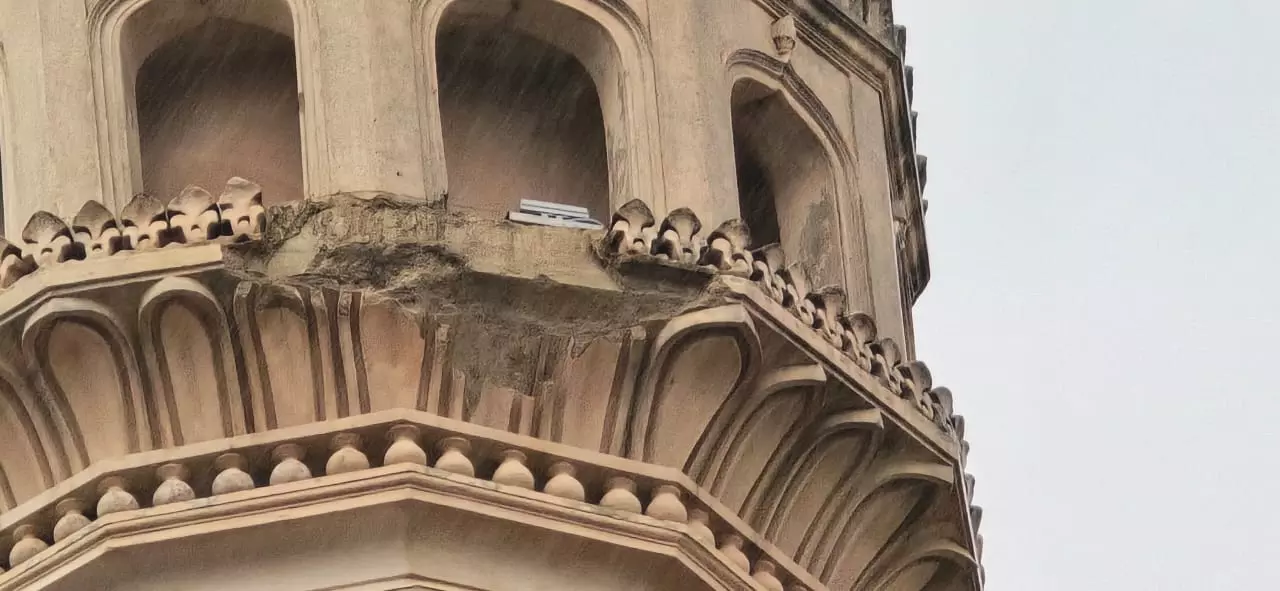 Plaster pieces of Charminar’s minarets falling down are not new. In 2010, the same lotus petal ornamental piece fell off from the same south-eastern minaret. No one was injured, and ASI authorities claimed the piece was not a structural part of Charminar and said the repair will be done in a week.