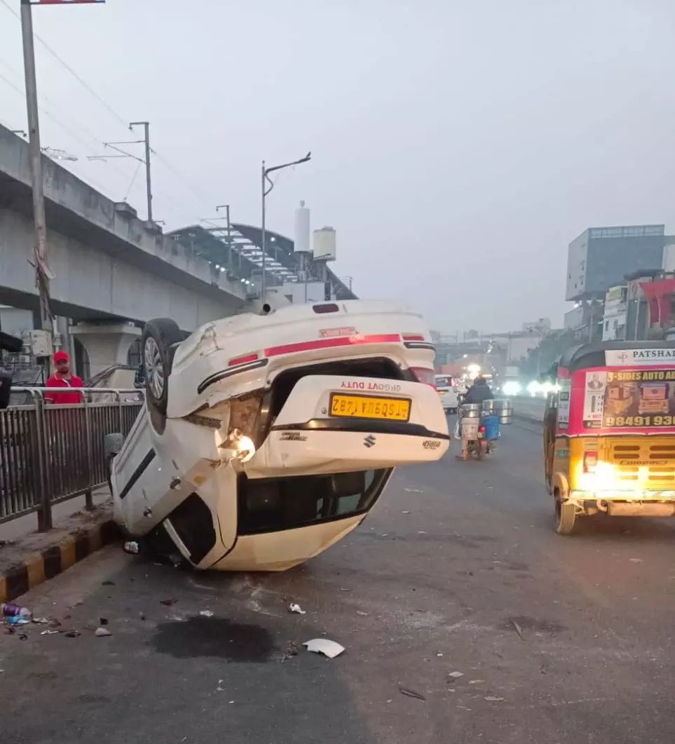 Close Shave For Techie As Car Overturns On Begumpet Flyover