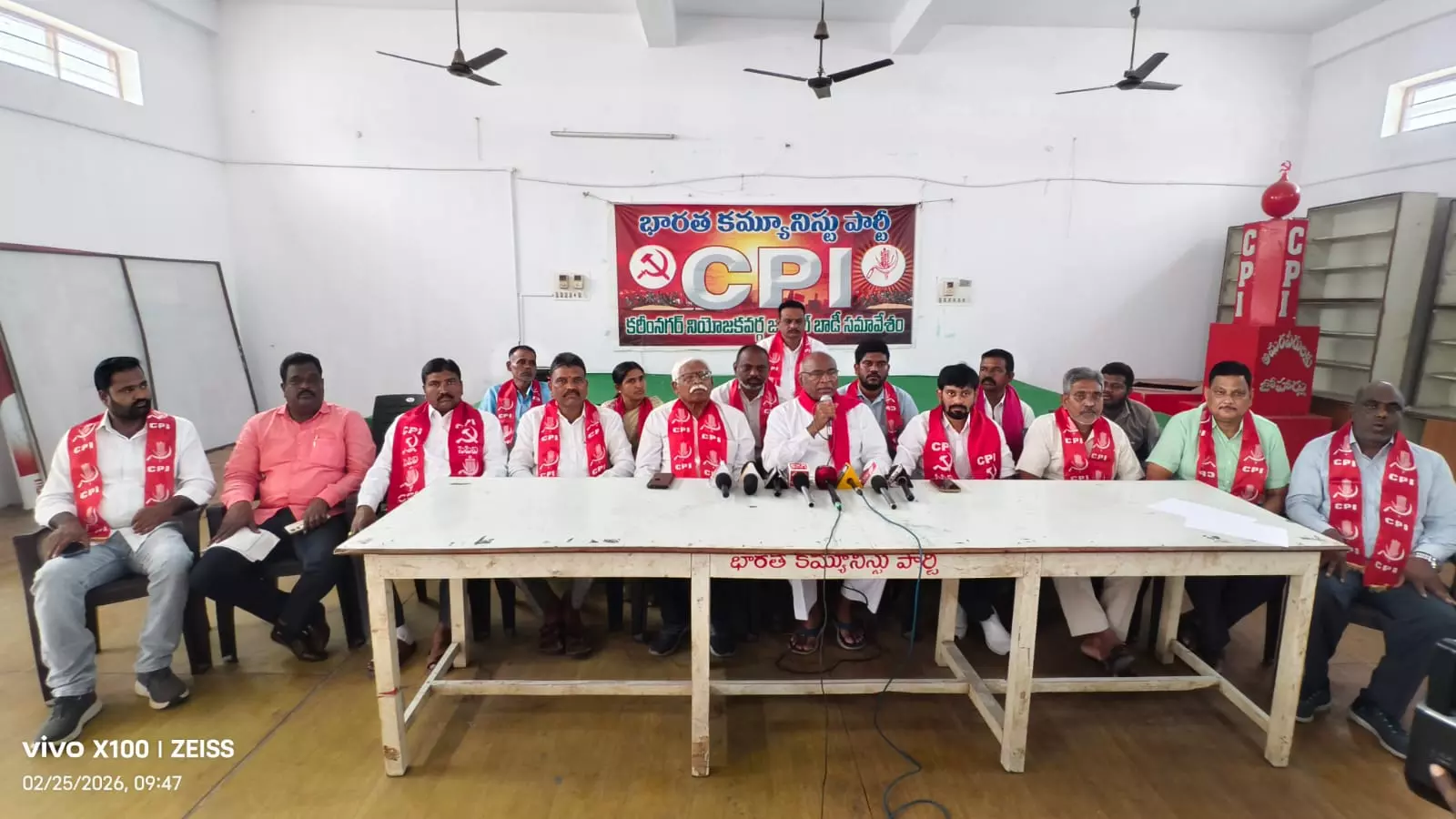 National leader of the Communist Party of India and former MLA, Chada Venkat Reddy, addresses the media at a press meet held at Baddam Yellareddy Bhavan in Karimnagar on Wednesday.