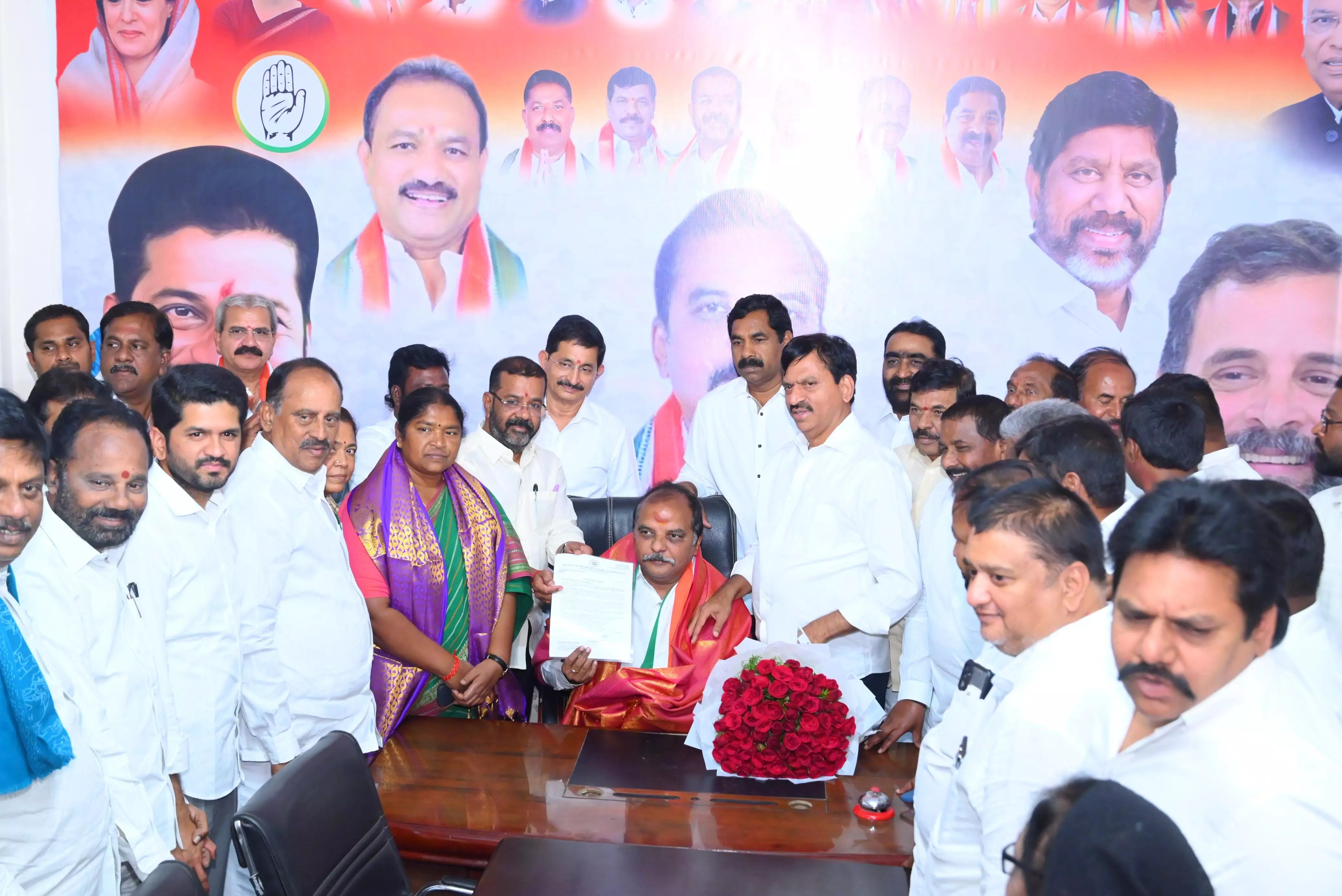The programme was held at the party office in the presence of In-charge minister Ponguleti Srinivas Reddy, panchayat raj minister Seethakka, and Chief Minister’s Adviser Vem Narendar Reddy.