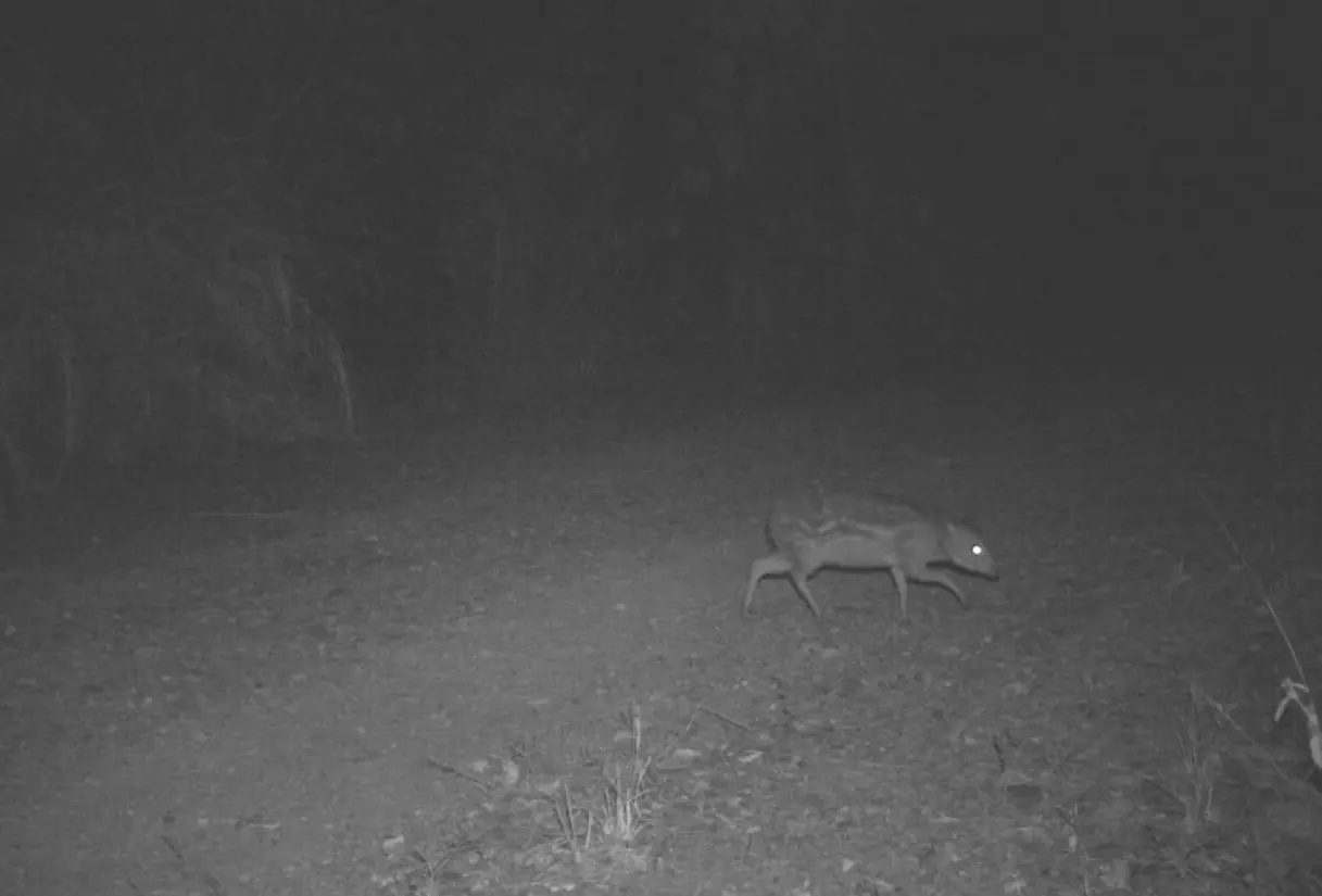 Infrared camera trap image of a mouse deer captured in the first week of February at the Eturnagaram wildlife sanctuary, believed to be the first such discovery of the species in the wild in Telangana. — SPECIAL ARRANGEMENT