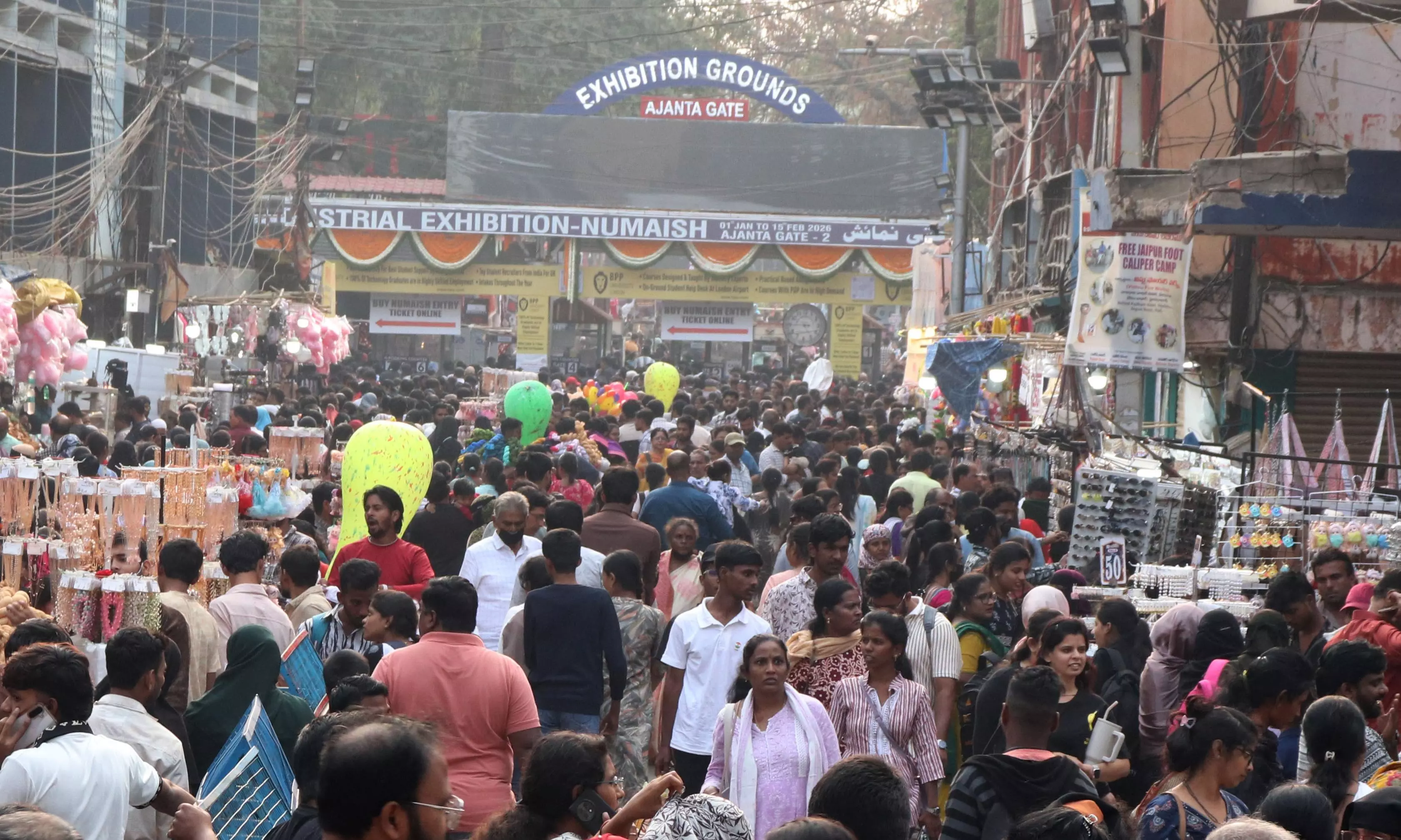 Heavy crowds were seen at the Nampally Numaish Exhibition on Monday. (Image: X)
