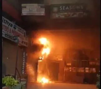 As the shops were closed, a major damage was averted. On seeing fire in the complex, local residents alerted the fire control room. A fire tender rushed to the spot and the flames were doused within an hour. The fire-fighters took necessary precautionary measures to prevent the flames for spreading to other shops.