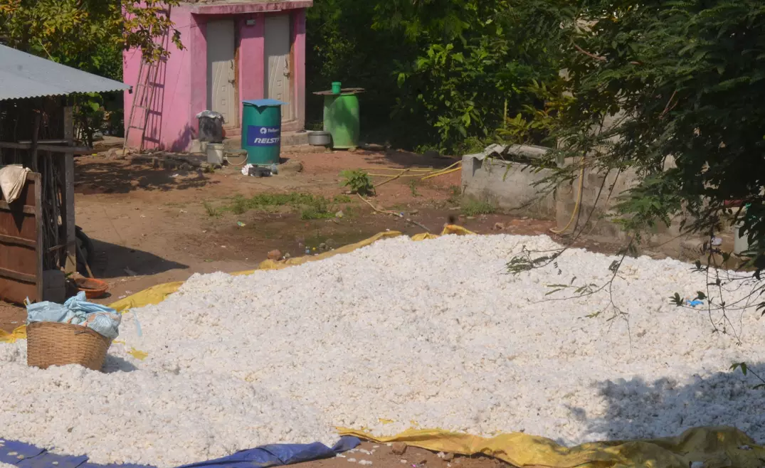 Farmer B. Raju of Sathnala said the moisture content in his cotton remained at 14 per cent even after drying the crop in the sun for 10 days, as foggy and cloudy conditions are making drying difficult.