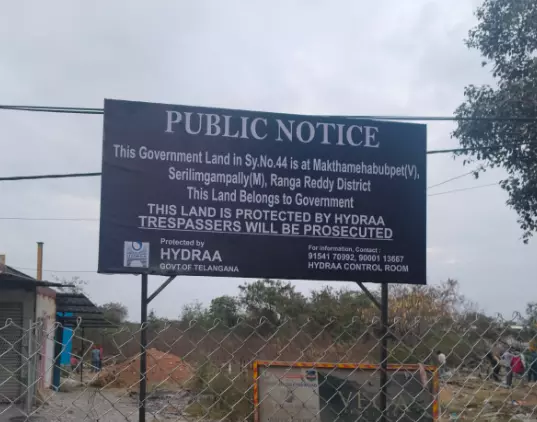 Hyderabad:After reclaiming 15 acres of government land in Maktha Mahboobpet, Serilingampally mandal, HYDRAA reassured residents that their homes will not be touched. The land, worth over ₹3,000 crore, was fenced and marked as government property following the January 10 operation.