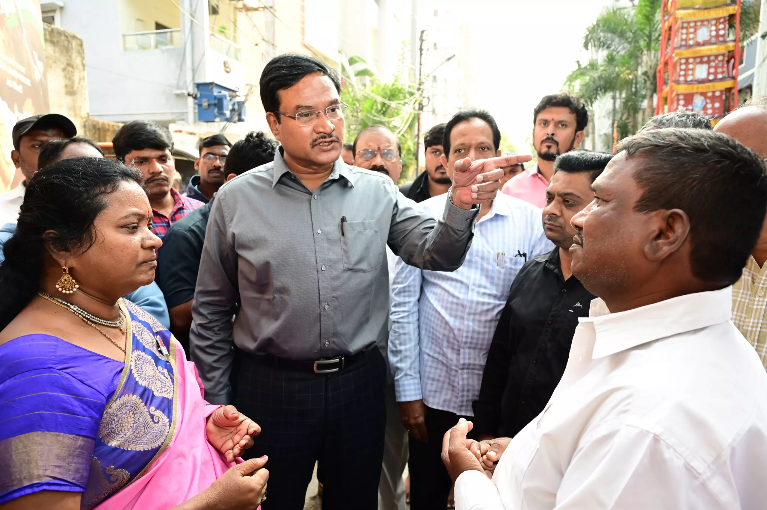 Hyderabad: HYDRAA commissioner A.V. Ranganath, inspected Himayatnagar’s Adarshnagar Basti in Street No.s 13 and 14 on Tuesday, where residents said dirty water was entering homes during rains and mixing with drinking water lines, causing serious health concerns.