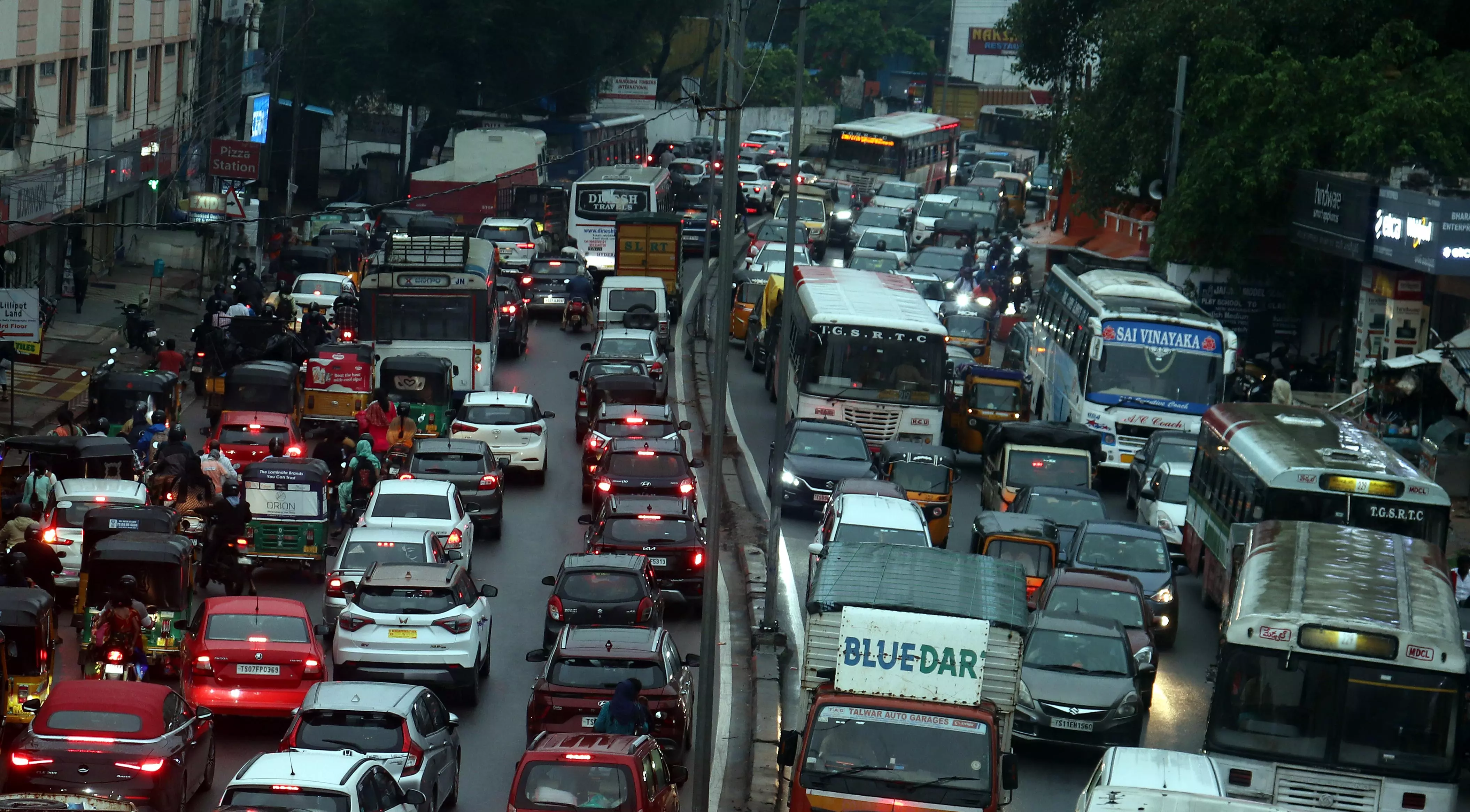 Traffic jam at Bowenpally due to rains. Photo: K. Durga Rao