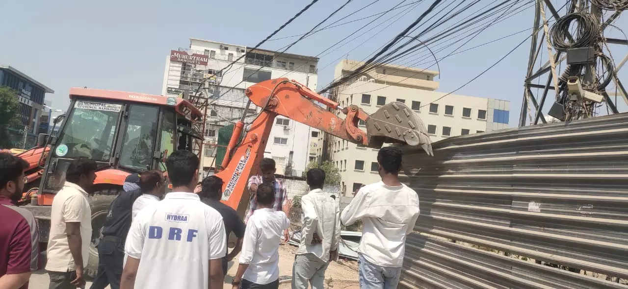 Hyderabad: The Hyderabad Disaster Response and Asset Monitoring and Protection Agency (HYDRAA) on Saturday razed a fence that had been unlawfully erected under the high-tension lines, constructed directly over the Bulkapur Nala and beneath high-tension power lines in the Manikonda marrichettu area.