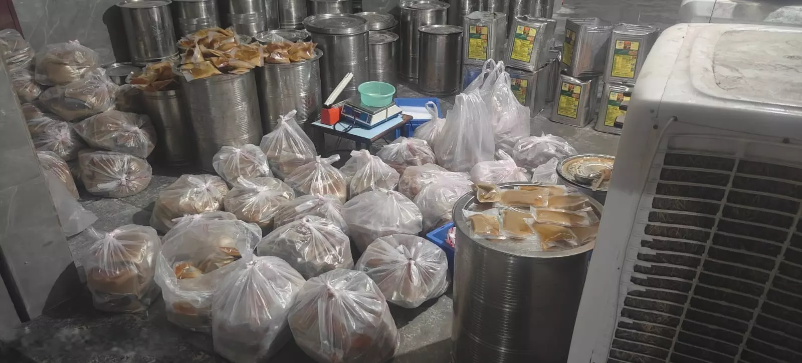 Additionally, four gas cylinders, 70 various-sized basins containing ghee, 25 empty drums, and packing covers were seized from the premises. The total worth of the seized products is Rs.18.26 lakh.