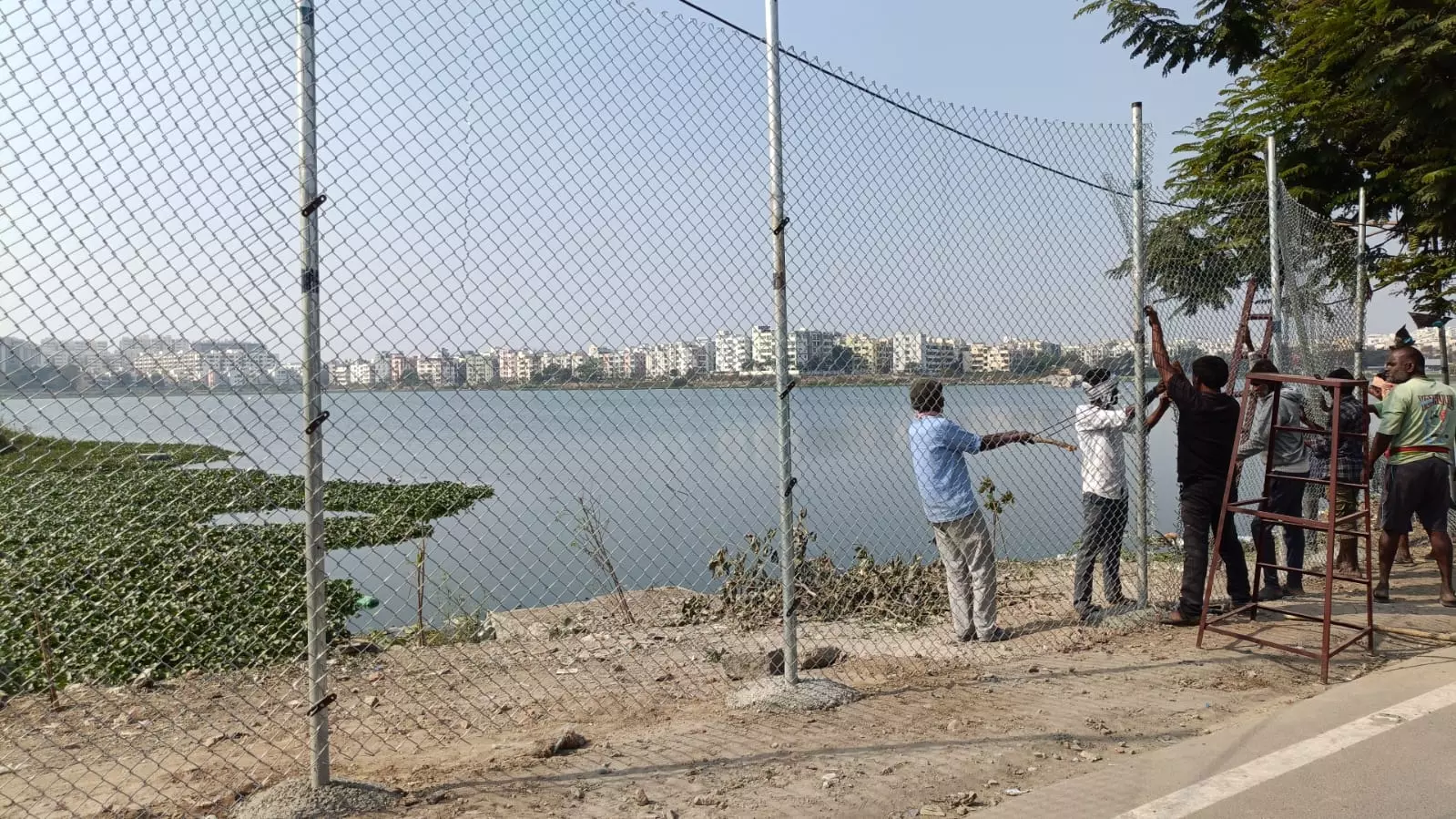 HYDRAA has erected a fencing upto 10 metre high along the stretch. This step was followed after removing the silt from the lake recently with the complaints to HYDRAA from the local residents about the chicken, meat and fish vendors dumping animal waste at the lake causing severe stench.