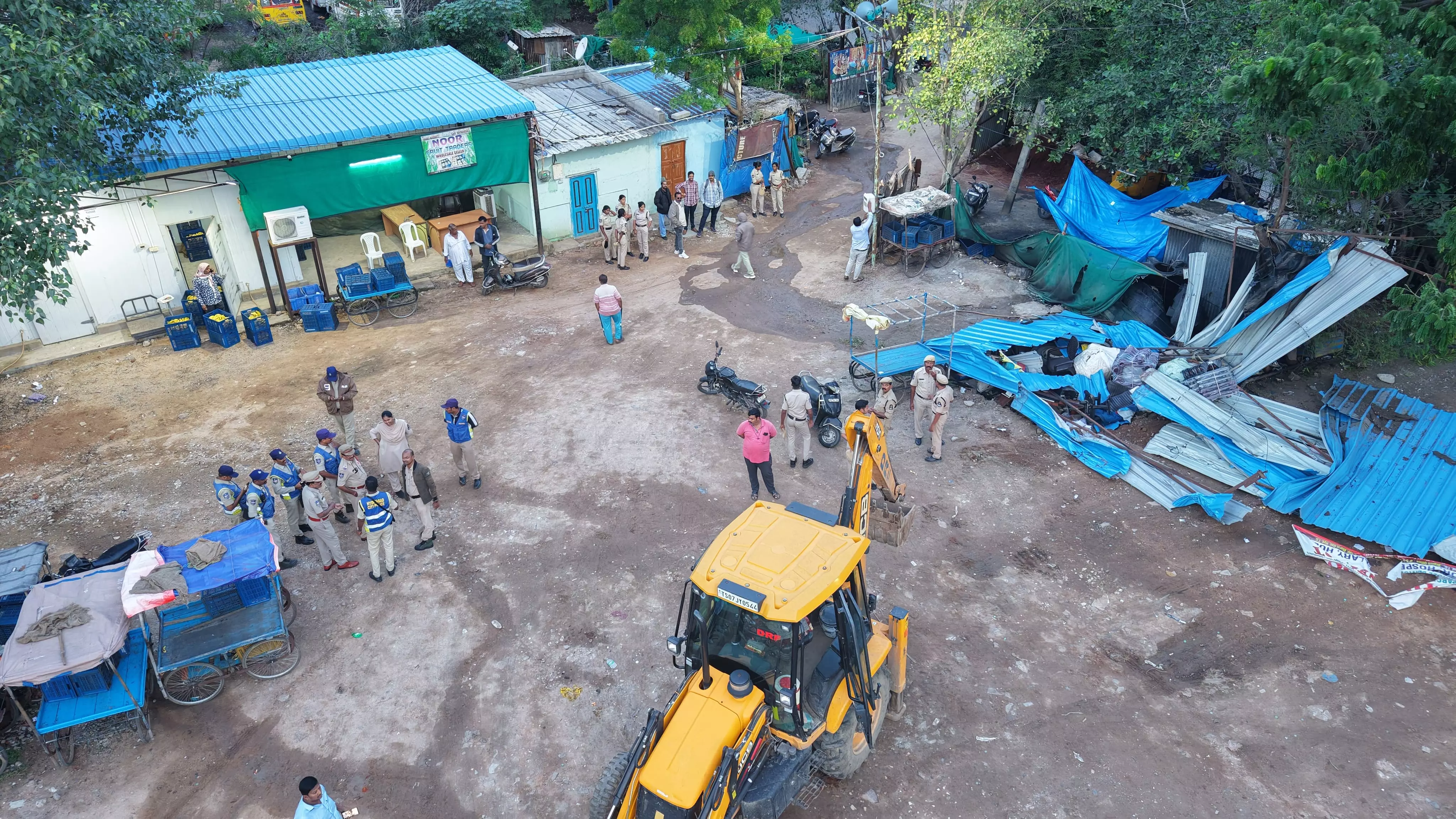 Officials said that a man named Yasin encroached the land, designated for a park under HUDA layout, and began running a tent, sound system and generator repair businesses in the land.