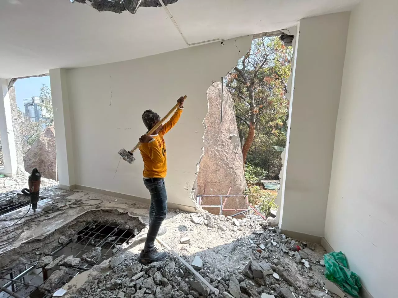 On the directions of HYDRAA commissioner A.V. Ranganath, officials demolished the unauthorised structure and registered a police case.