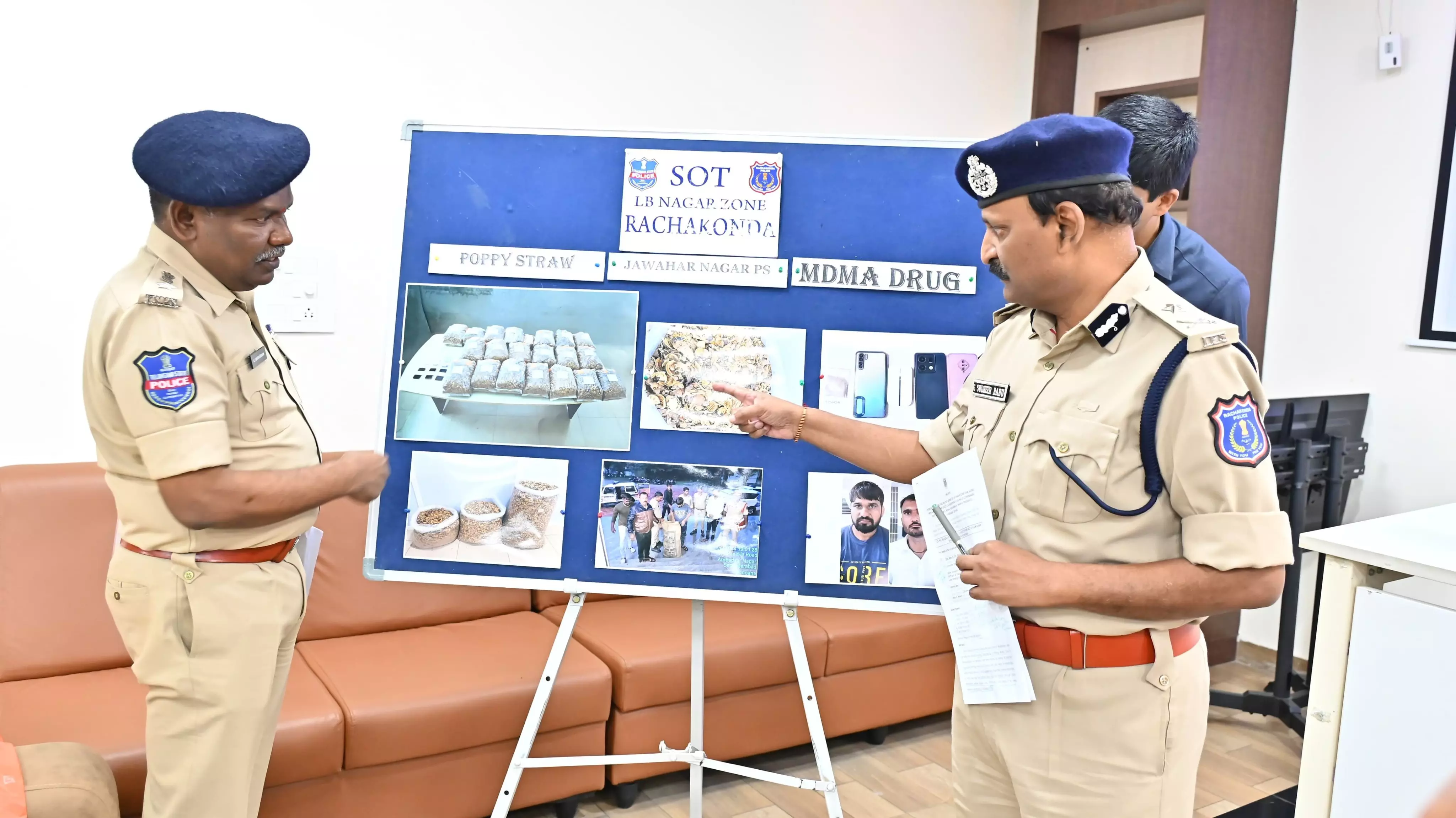 Hyderabad: The Special Operations Team (SOT) of LB Nagar Zone and Jawahar Nagar police bused an inter-state drug peddling racket, arresting two people from Neemuch, Madhya Pradesh. The seized drugs are valued at ₹45 lakh.