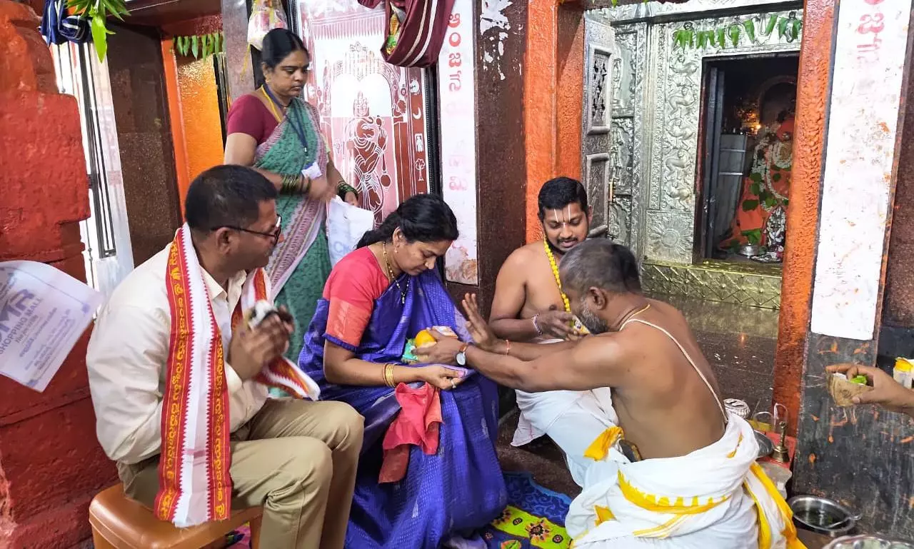 Temple authorities and police personnel extended greetings to the judge on the occasion. District court officials, Sub-Inspector Naresh, ASI Ramana Reddy and temple superintendent Upadhyayula Chandrashekhar were present.