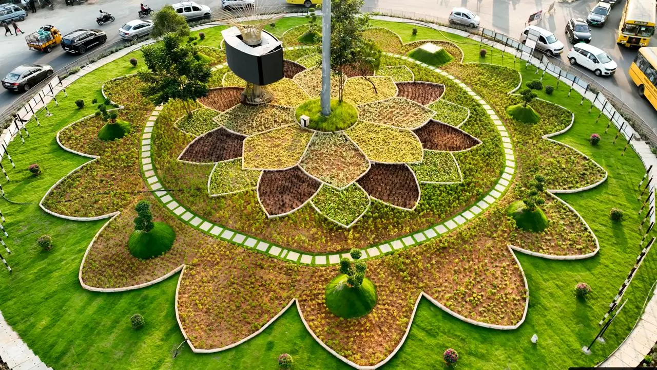 Hyderabad:The HMDA said it had developed a lotus petal-themed traffic island at Kokapet Junction. The island depicts layered foliage, flowering hedges, and ground covers.
