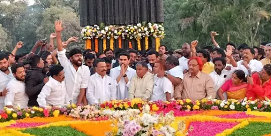 TDP leaders, supporters gather at NTR Ghat; floral tributes and photo exhibition held