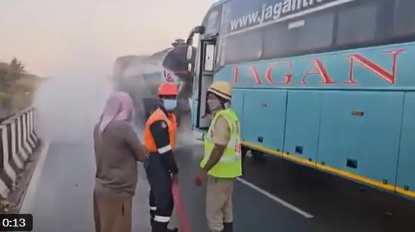 The impact caused dense fumes to spread across the area due to the chemicals stored in the tanker. Reacting swiftly, passengers onboard the bus exited safely through the emergency exit, preventing any casualties or injuries.