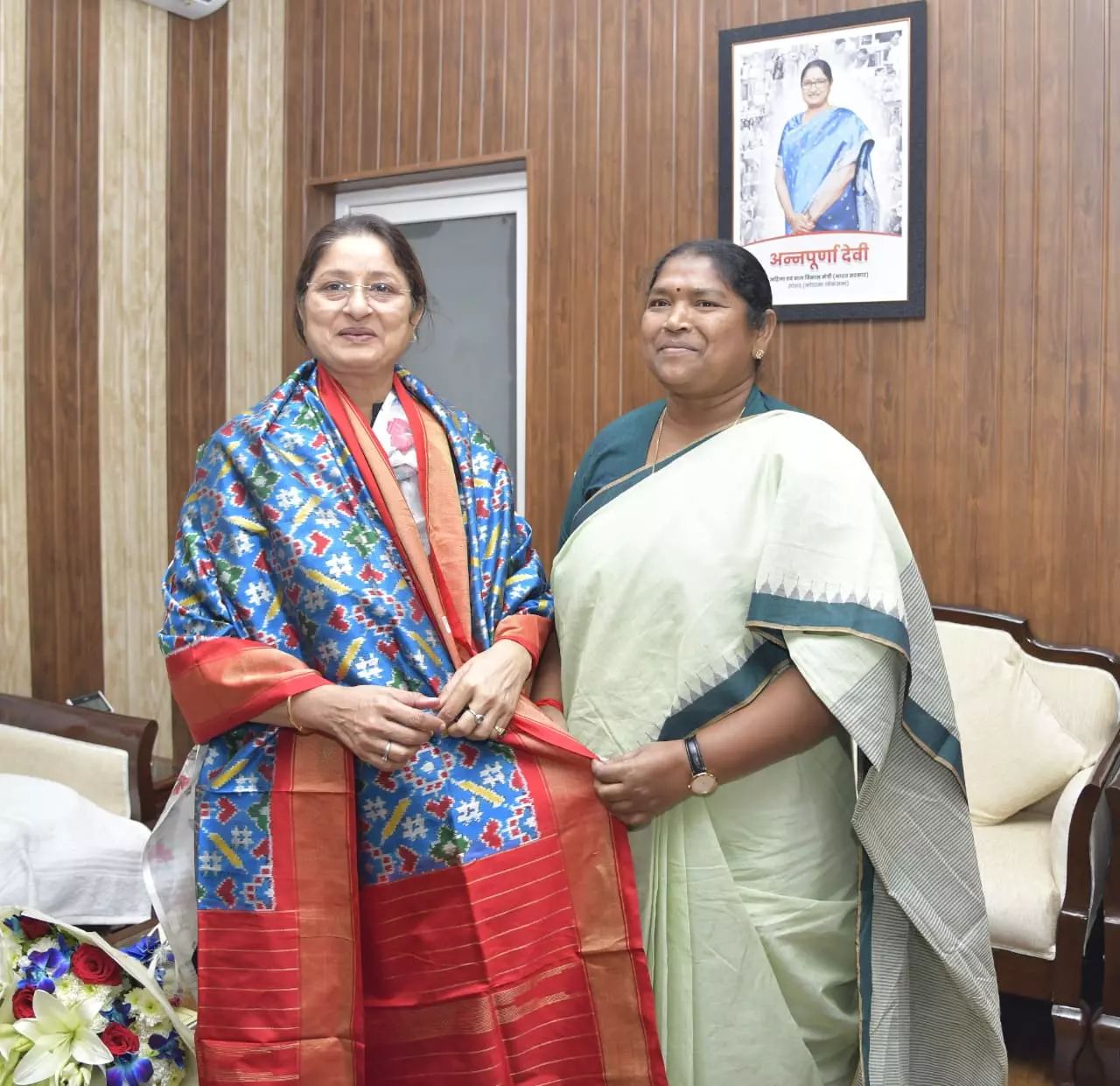 Telangana panchayat raj minister Seethakka met Union minister for women and child development Annapurna Devi in New Delhi on Saturday and thanked the Centre for including Mulugu in the programme.