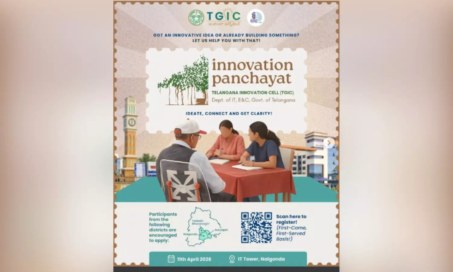 Nalgonda: The “Innovation Panchayat” programme will be held at the IT Tower in Nalgonda on April 11, aimed at encouraging young innovators in the erstwhile Nalgonda district.