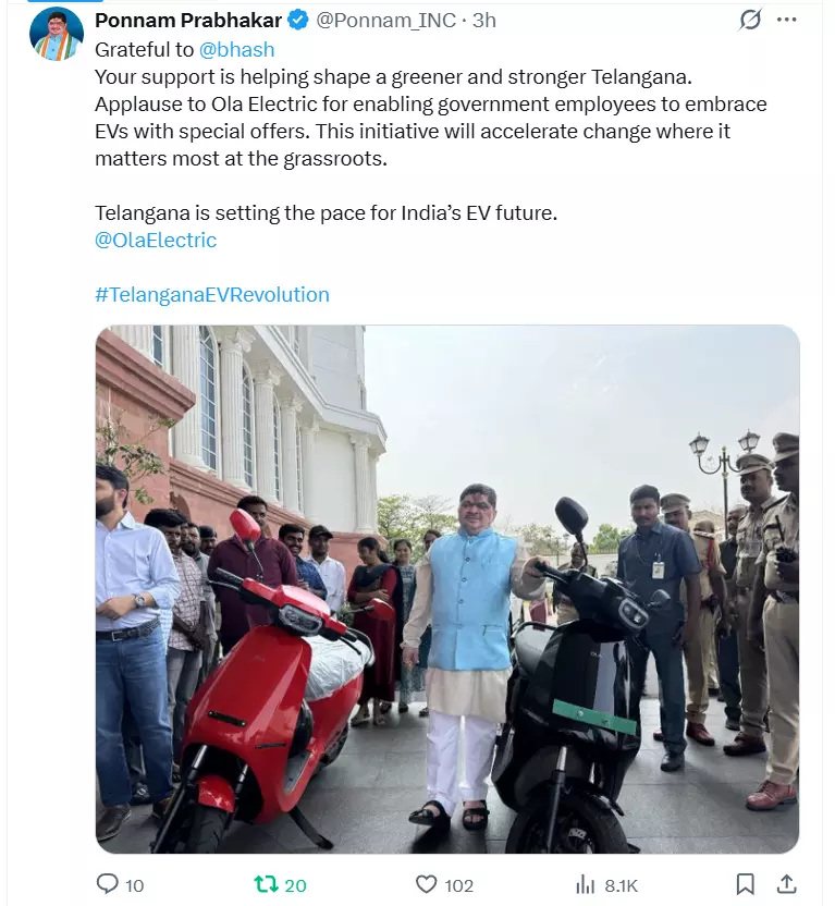 Netizens Hail Telangana EV Policy: India's First Discount for Govt Employees Wins Praise