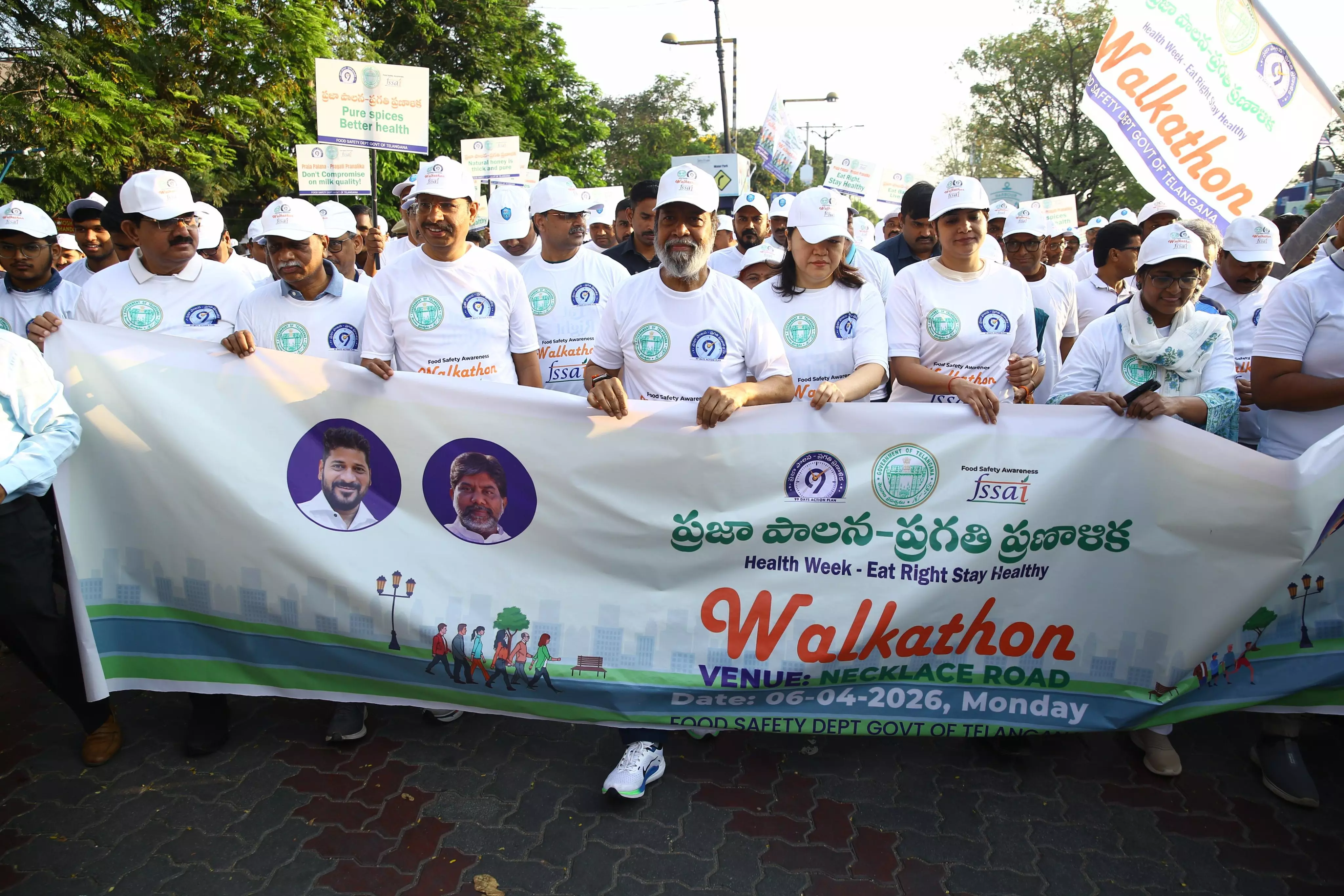 Hyderabad: Health Minister C Damodar Raja Narsimha on Monday flagged off a food safety awareness walkathon on Necklace Road, aimed at promoting awareness on safe and healthy food practices among the public.