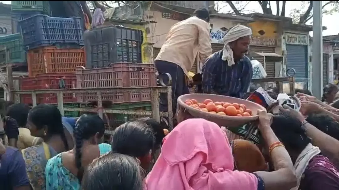 According to the farmers, the same produce had fetched around Rs 50 per kg a few weeks ago. With prices failing to cover even fuel charges for transport, they chose to distribute the crop instead of selling it at the prevailing rates. Local residents collected the tomatoes as news spread in the market yard.
