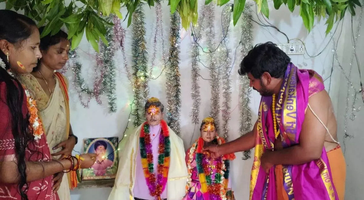 WARANGAL: A tribal couple in Santulal Podu Thanda of Bayyaram mandal in Mahbubabad district has been conducting a ceremonial wedding for their deceased son and his partner for the 23rd consecutive year.