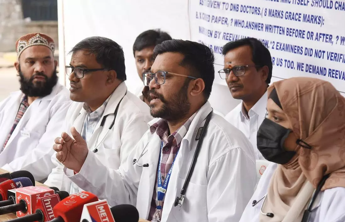 Dr Venkatesh Kumar Durgam said, “In DNB examinations, the NMC provides eight grace marks. We request similar provisions for MD and MS students through an order so that we are not adversely affected.”