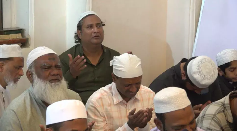 TMREIS president Faheem Qureshi, Telangana Haj committee chairman Syed Afzal Biyabani, Religious scholars and students from Madarsa attended the prayers.