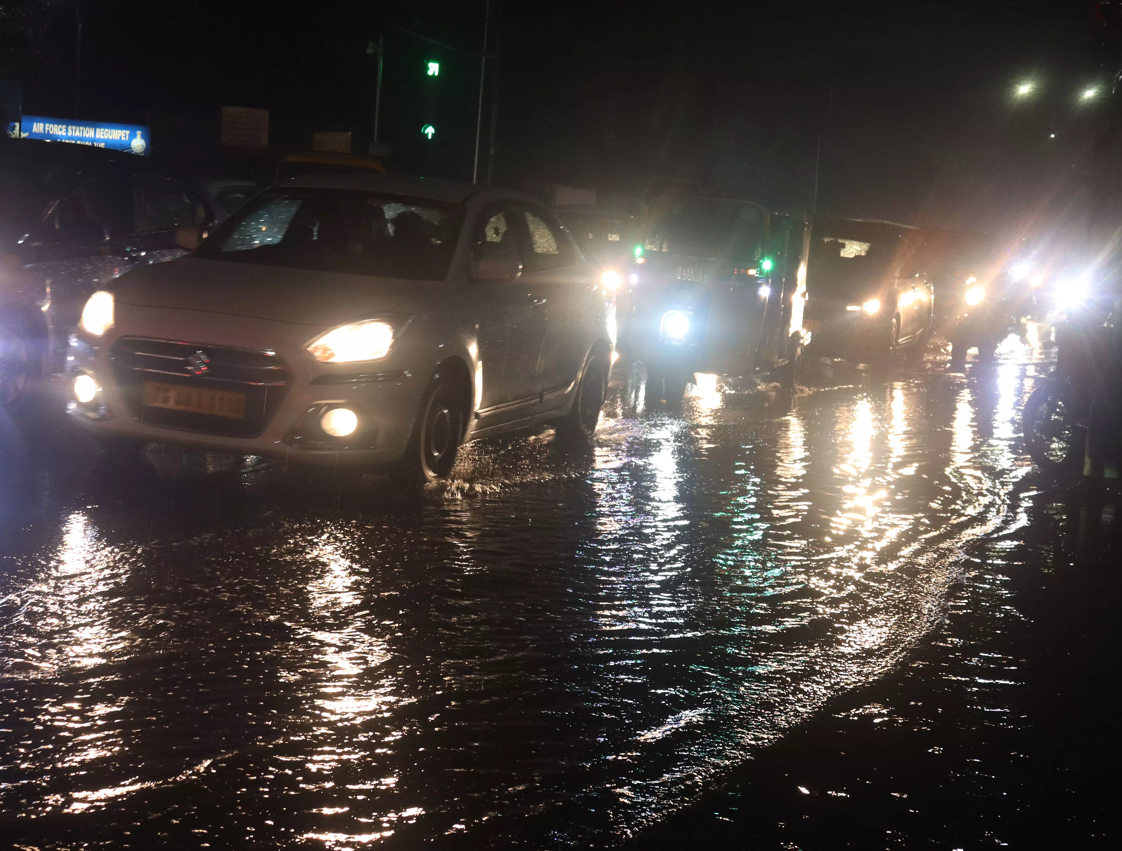 The downpour struck without warning as people headed home from work. Madhapur, Gachibowli, Kukatpally, Mehdipatnam and Jubilee Hills reported waterlogging and slow-moving traffic, while commuters took shelter under flyovers, bus stops and metro stations.