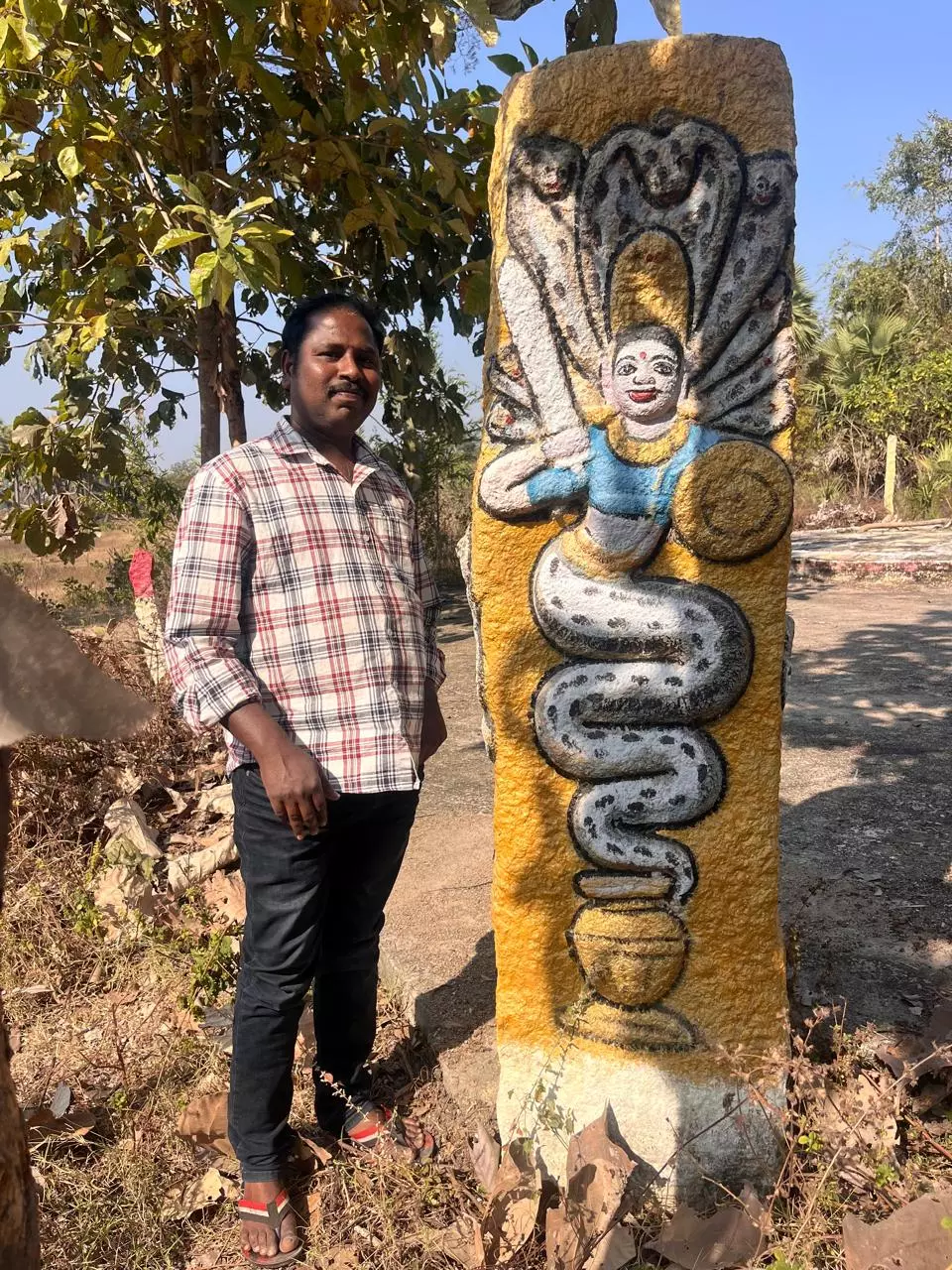 Karimnagar: A rare historical sculpture depicting the ‘Naga Bonam’ (ritual to serpent god) tradition was discovered at Potlapalli in the Husnabad constituency of Karimnagar by Kotha Telangana Charitra Brundam (KTCB) member Kolipaka Srinivas.
