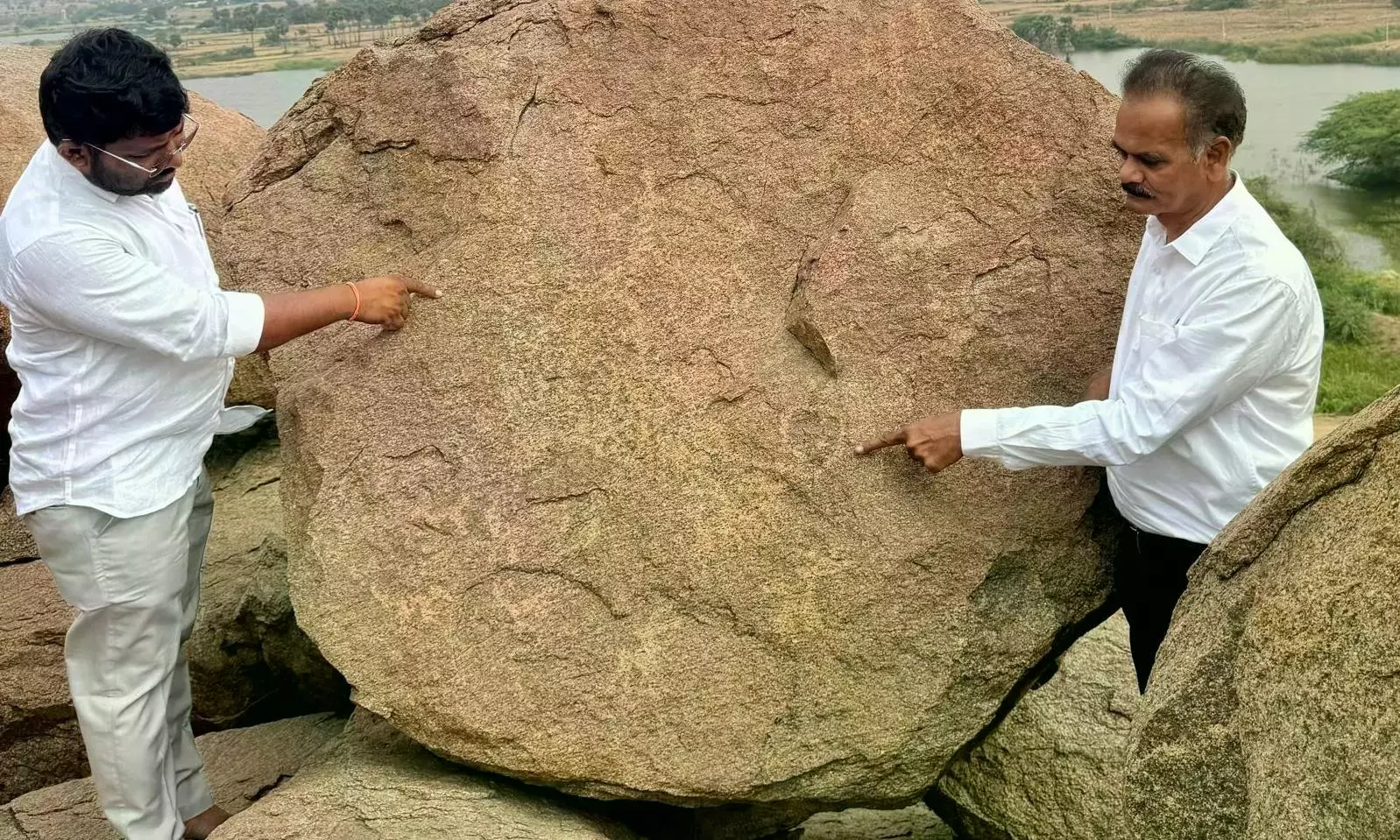 Standing 10-20 feet tall, the rocks bear traces of human history: Stone Age axes, Neolithic tool-sharpening grooves, Satavahana tools, Kakatiya hero stones (Veragallu), petroglyphs, and Telangana’s largest engraving at Veerannapet. Cairns, called ‘rakasi gullu’ — human-made stone piles as burial mounds — dot the landscape, while Bonakollur’s Narayanswamy Temple features Garuda and shankha-chakra carvings on the rocks. “These aren’t just stones; they’re nature’s orchestra playing tunes from prehistory,” exclaimed local historian and retired lecturer Dr D.N. Swamy.