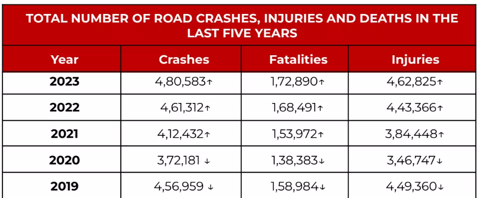 National highways continue to be a major source of risk. Telangana recorded 3,058 deaths on highways alone in 2023, accounting for nearly half of the state’s total fatalities. This mirrors the national pattern, where highways form less than 5 per cent of the road network but accounted for 59.3 per cent of all road crash deaths across India.