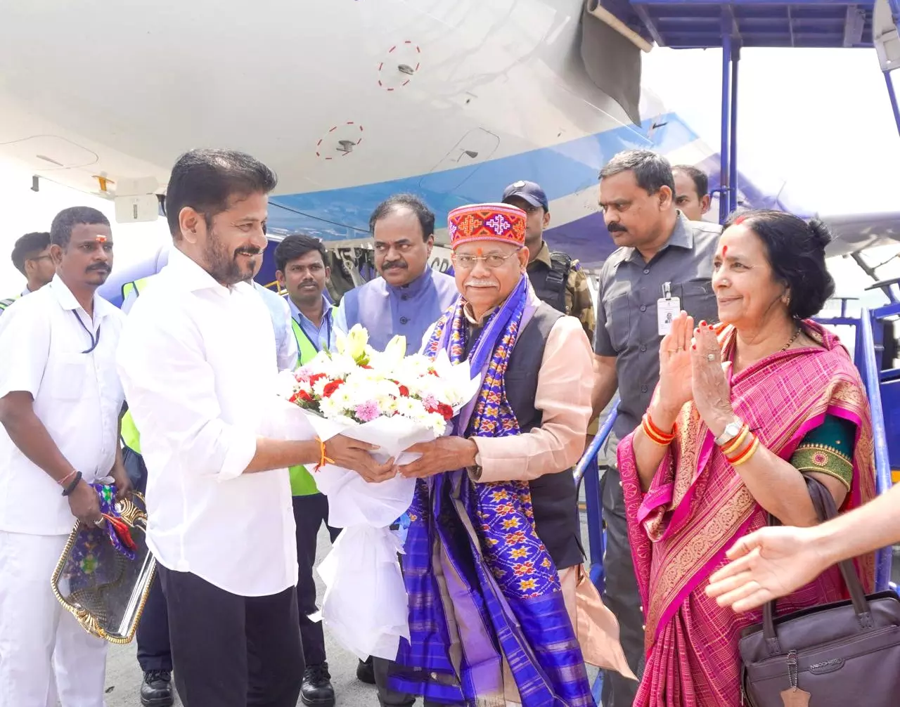 Chief Secretary K. Ramakrishna Rao, Director General of Police B. Shivadhar Reddy and several senior officials were present at the airport to welcome the Governor-designate.