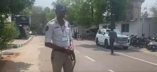 Even as the staff and the police were on regular duty on the Assembly premises, a snake was spotted at the media point creating a scare among everyone. A traffic police constable then rushed to the media point and captured it.
