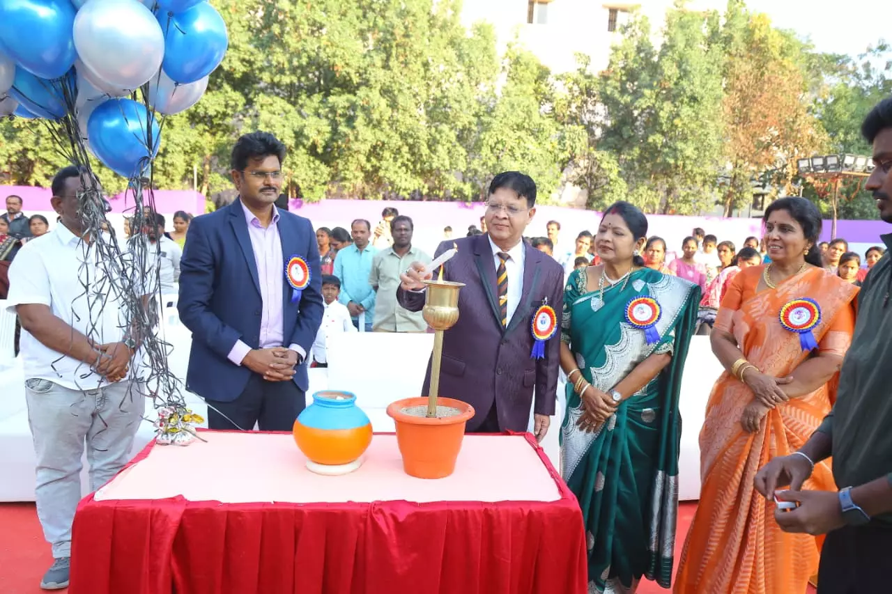 The event featured a march-past, ceremonial lamp lighting, and addresses by Dr. Sailesh Sampathy, Mrs. Deepika Sampathy, and Mrs. Y. Sarada, who lauded the school’s focus on holistic education.