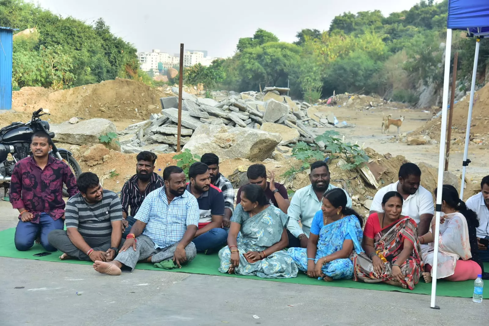 Hyderabad: Street food stall workers in Madhapur staged a protest on Thursday after their sheds were demolished and the authorities began fencing the area.