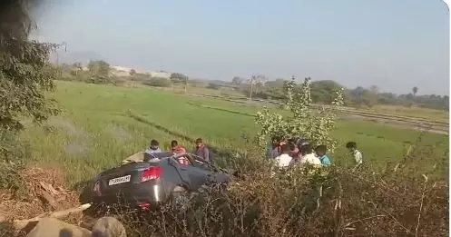 A school teacher died with three others suffered injuries after the car in which they were travelling overturned and into the fields after its tyre burst at Aravpally mandal in Suryapet district on Saturday. (Photo: X)