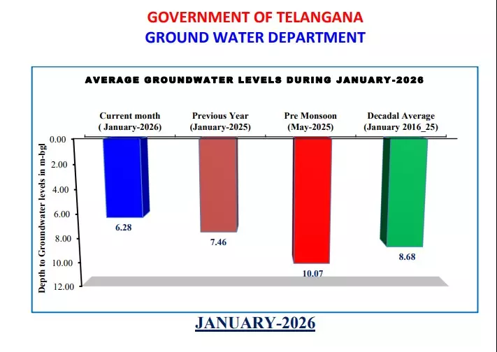 Hyderabad: Telangana has witnessed a significant improvement in its groundwater scenario, driven by excess rainfall during the 2025–26 water year, according to the latest assessment released by the State Ground Water Department.